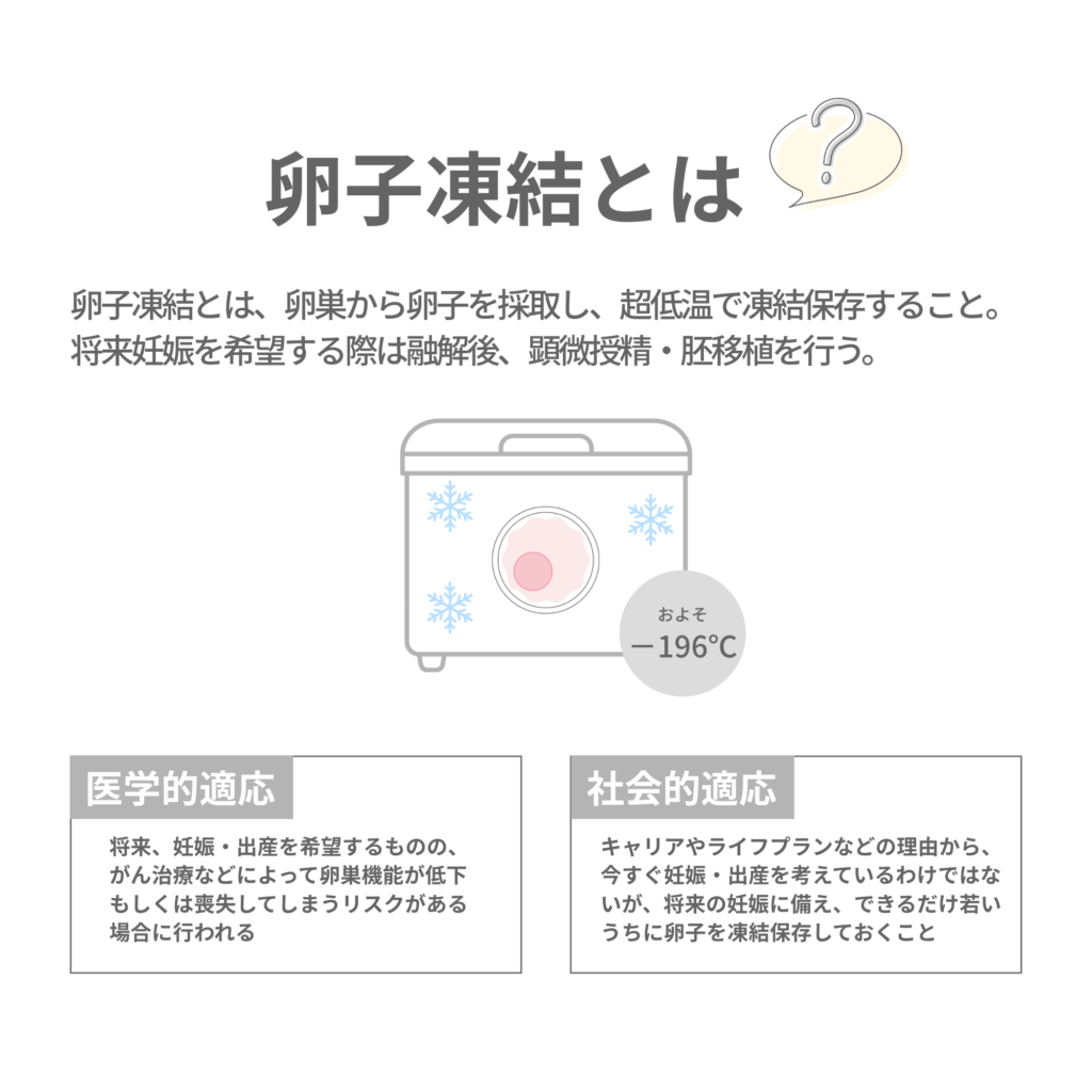 卵子凍結は大きく分けて「医学的適応」と「社会的適応」があります。