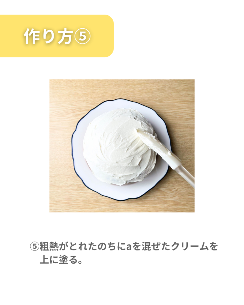 ⑤粗熱がとれたのちにaを混ぜたクリームを上に塗る。